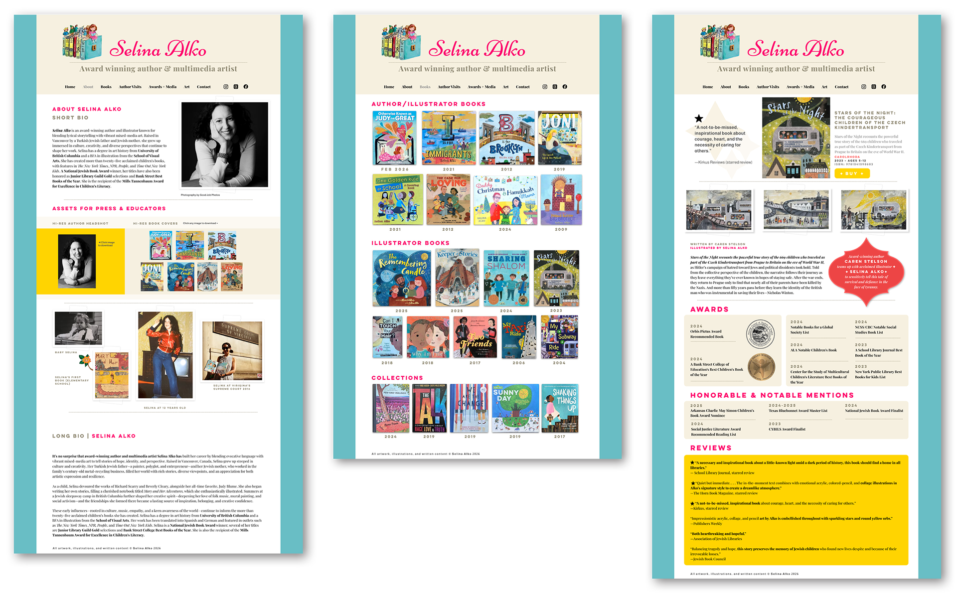 Selina Alko’s website had grown organically to support an expanding body of work, including books, awards, author visits, and media. While the content was strong, the site had become difficult to navigate and visually inconsistent across devices.